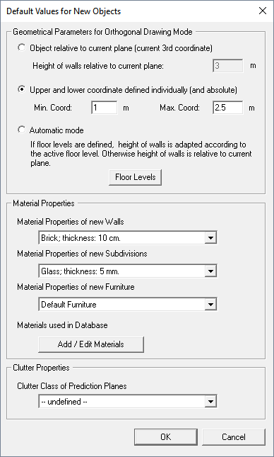 - Under Material Properties, from the Material Properties of new Subdivisions drop-down list, select Glass; thickness: 5 mm.