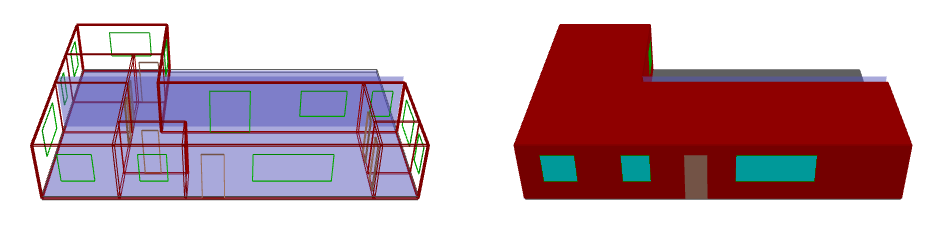 Figure 2. On the left, a model is displayed without the thickness of the walls, to the right, a model is displayed with wall thickness .