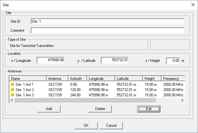 Note: The exact coordinates are not important for this example, but the above location is used in the steps that follow.The Site dialog is displayed.Figure 3. The Site dialog.