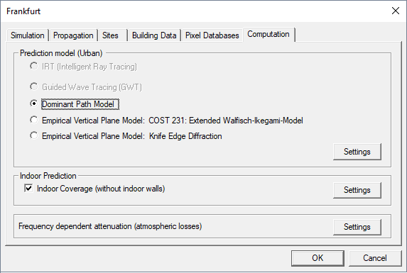 Select the dominant path model (DPM) as computation method.