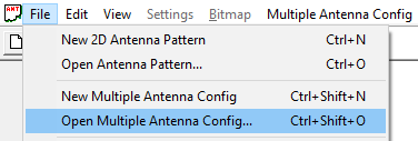 In the MASC project, only the configuration is described. The resulting antenna pattern is independent of the project settings and must be saved separately by means of the menu .