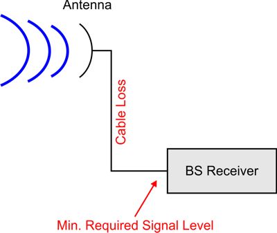 Note: The specified minimum signal level for the uplink direction refers to the input of the base station receiver and not to the power received directly at the antenna. In case a cable loss is defined, the received power at the antenna is additionally reduced by the cable loss before it is compared to the specified minimum required signal level.