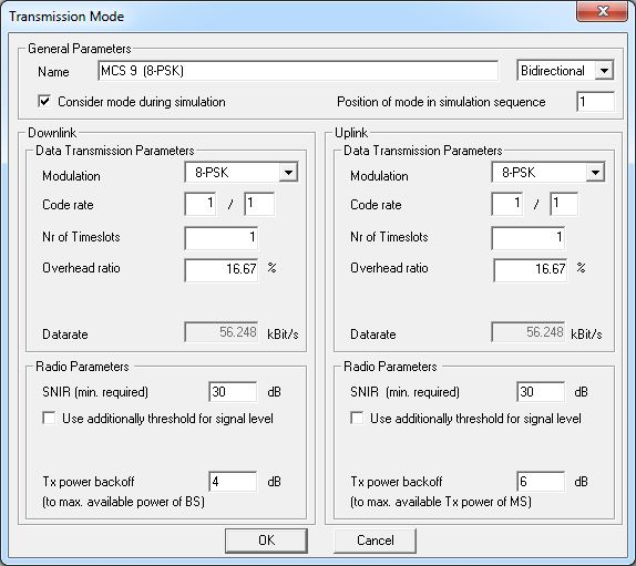 If this option is enabled, the transmission mode will be considered during network planning simulation. Transmission modes which are specified to be not considered during simulation are display with red text color in the Transmission Modes (MCS) list.