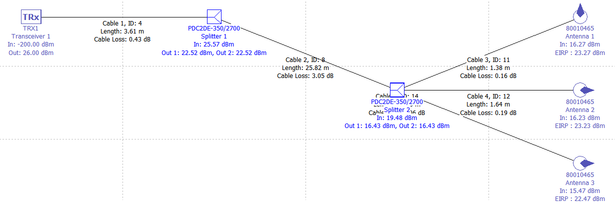 ProMan offers the possibility to visualize a signal level plan of the defined components independent of their actual position and the database of the scenario. The Signal Level View can be displayed by clicking .