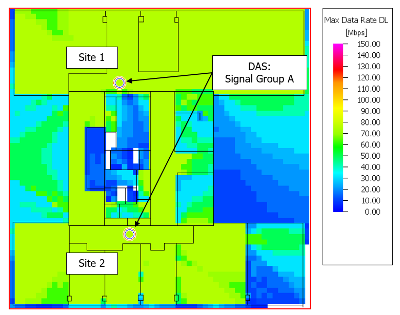 - Configuration 1: Both sites are conventional antennas forming a DAS (Signal Group A).