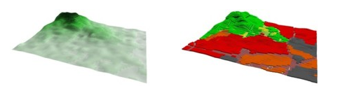 The additional consideration of land usage (clutter) maps is of course also possible. Similar to the topographical data, the clutter maps are also converted from raster data to 3D vector data taking account the clutter heights and the electrical properties of the materials defined for each clutter class individually. This approach allows a real 3D representation of the land usage maps.