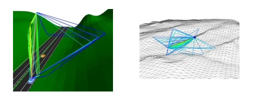 More sophisticated approaches include multiple diffractions in the vertical plane (knife edge diffraction models) or they compute the wave guiding around obstacles in 3D (dominant path model). All these prediction models listed above are focusing only on a single propagation path. But in reality there are very often more propagation paths between transmitter and receiver. And only the superposition of all these paths leads to an accurate prediction. Therefore, ray-tracing models are available for rural scenarios.