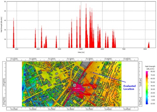 The channel impulse response of the radio channel can be analyzed for each computed pixel within the simulation area.