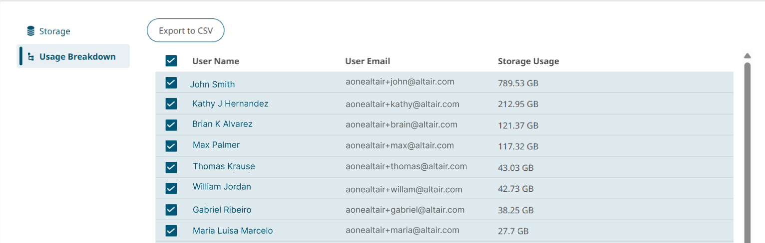 - Export storage usage reports to share with users.